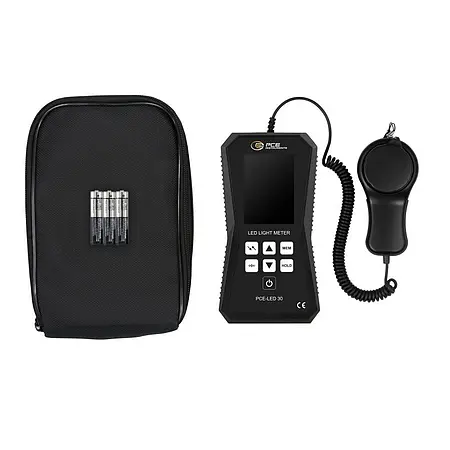 Measurements can be taken with the LED luxmeter in lux or food candle. The device is operated using just seven buttons, which enables one-handed operation. Our LED luxmeter is a battery-operated handheld device, making mobile measurements possible.