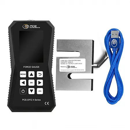 The internal memory of 32 GB offers space for 30 million measuring points. This allows measurement logs to be created, saved and exported. The force tester has a USB-C interface that can be used to read the measurement data into the PC software. The force gauge is equipped with a graphic LCD that displays the measured values both numerically and graphically. In addition, a bar chart shows the measured value in the selected measuring range. The measuring cell is protected to IP67 and can therefore also be used in harsh industrial environments.