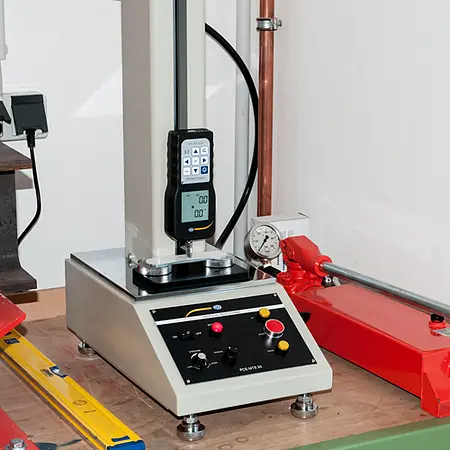 Use of the motorized material test stand requires an AC power connection. The feed rate is adjustable between 50 ... 500 mm / min using the controls on the front panel. The traverse / distance also can be adjusted.