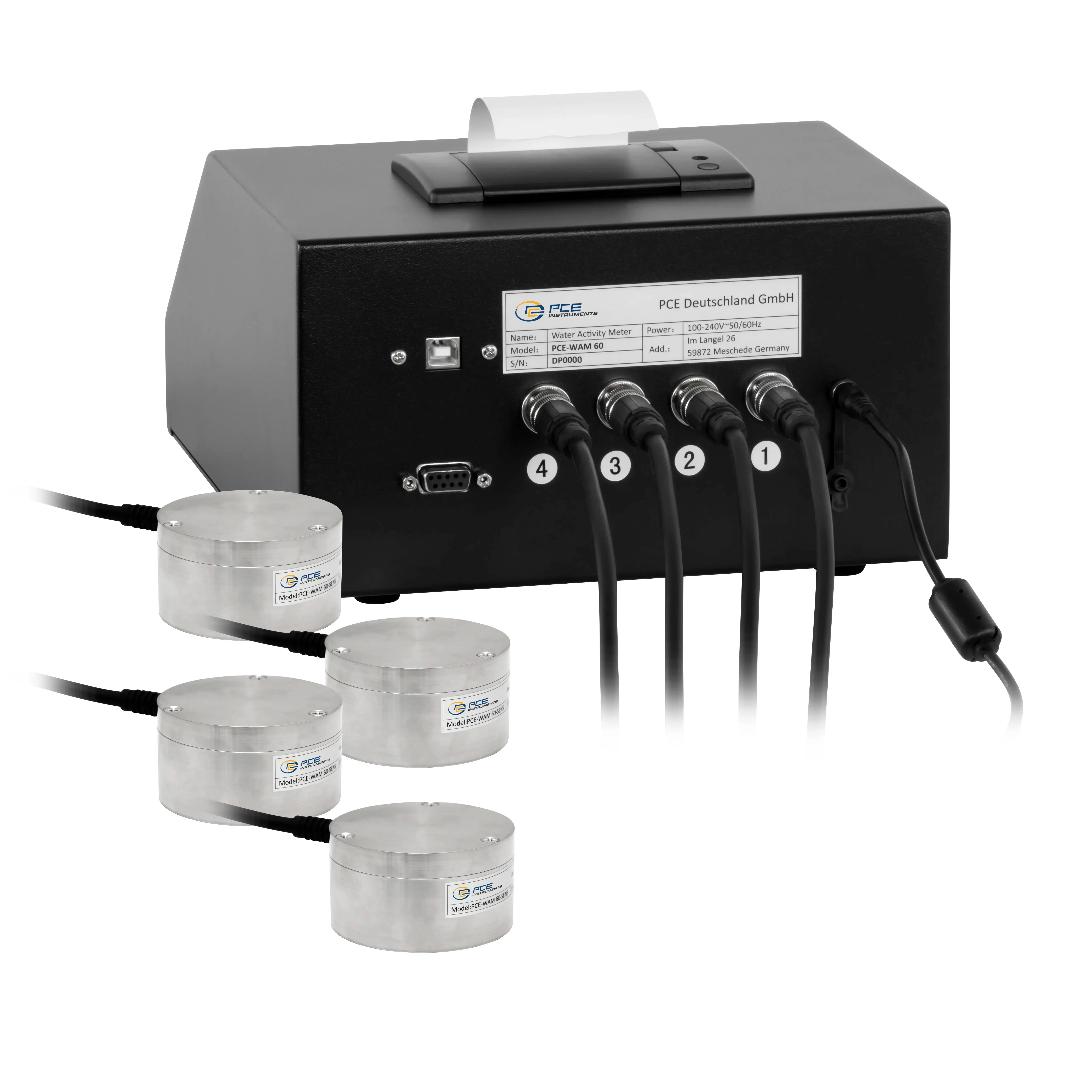 Analyseur d'humiditéde laboratoire de 4 canaux / Mesure de la température / Mémoire interne et logiciel / Interface USB et R-S232 / Imprimante intégrée / Écran LCD tactile de 7" / Inclus 4 capteurs