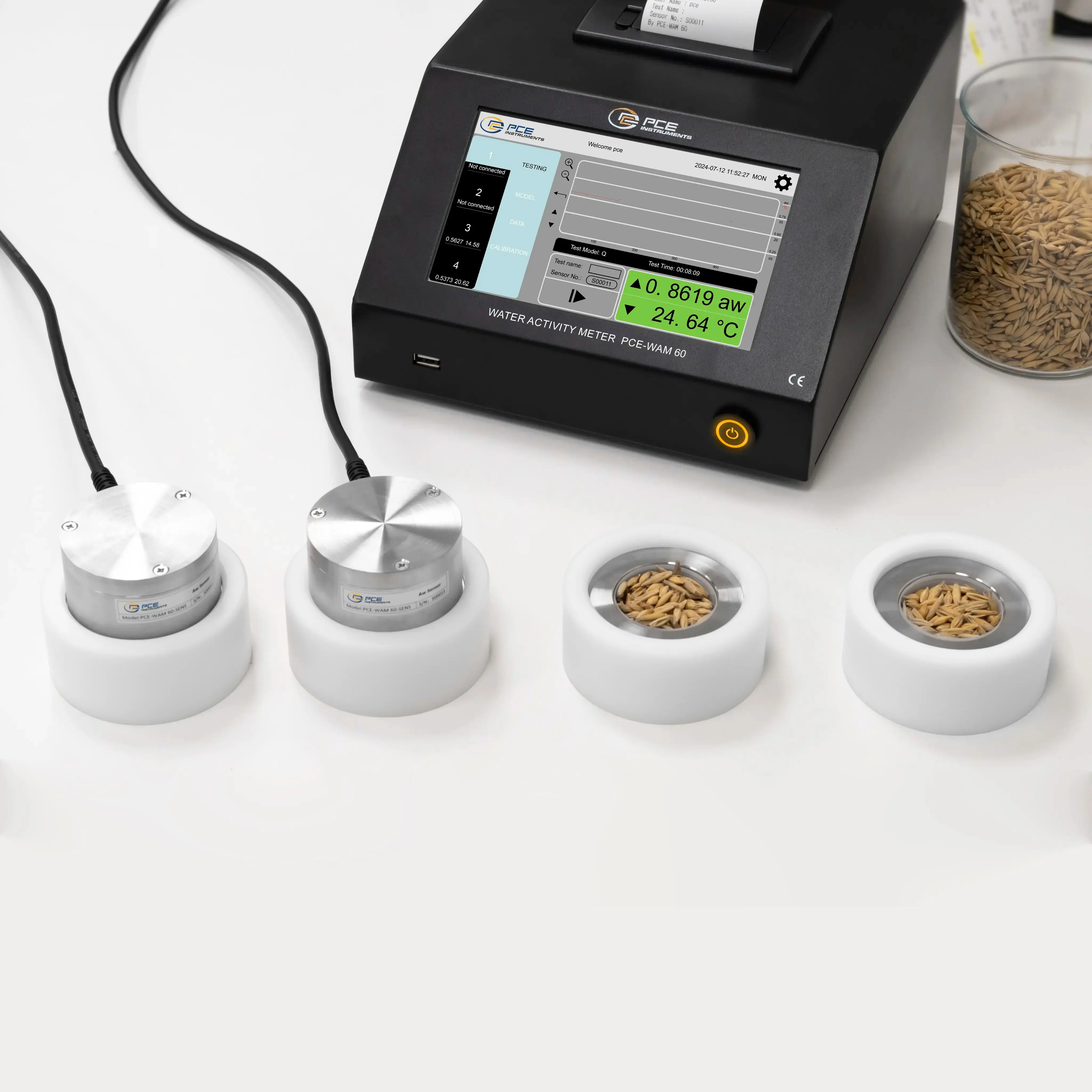 L'analyseur d'humidité permet la mesure individuelle ou simultanée de l’activité de l’eau dans 4 canaux. Il évalue l’activité de l’eau dans une plage allant de 0 à 1 aw, et la température dans une plage entre -10 et +50 ºC. Cet analyseur d'humidité est équipé d’un écran tactile de 7" qui indique la valeur de mesure en temps réel, et sauvegarde les données afin de pouvoir les analyser par la suite. À tout moment, vous pouvez consulter les valeurs de mesure et les graphiques correspondants. Grâce au capteur de grande qualité intégré, vous obtiendrez des résultats très précis dans un délai de 3 à 5 minutes.