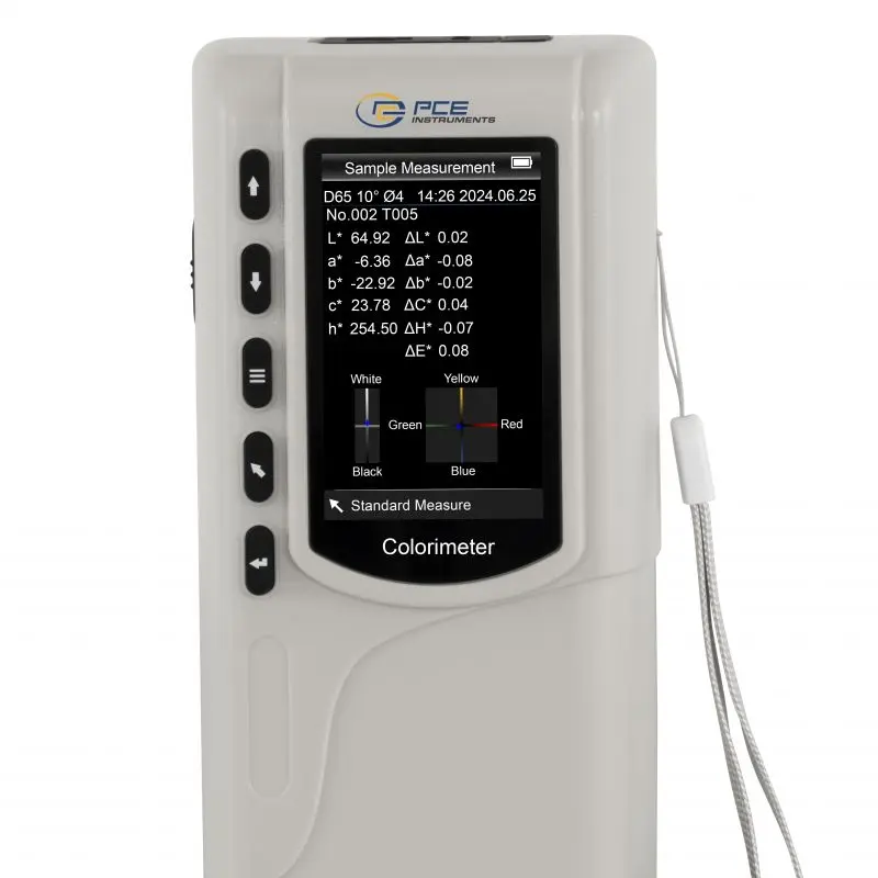 Ce colorimètre a été spécialement développé pour le contrôle qualité de grande précision. La géométrie que ce colorimètre utilise est de 8/d. L’ouverture de mesure à un diamètre de seulement 4 mm. Le colorimètre offre la possibilité de sélectionner différents espaces de couleurs : CIEL*a*b*C*h, CIEL a*b* et CIEXYZ. Après une mesure, le résultat peut servir de valeur de référence et d’autres échantillons peuvent être mesurés et comparés avec la mesure de référence. Pour ces derniers, l’écart par rapport à la valeur de référence est affiché en plus du résultat de mesure.