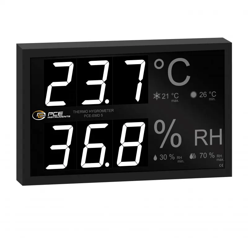 Contrôleur de température avec cadre résistant en aluminium / Hauteur chiffres : 100 mm / Plage : 0 ... 50 ºC et 0,0 ... 99,9 % H.r. / Connexion simultanée de 4 capteurs maximum / Certificat d'étalonnage ISO