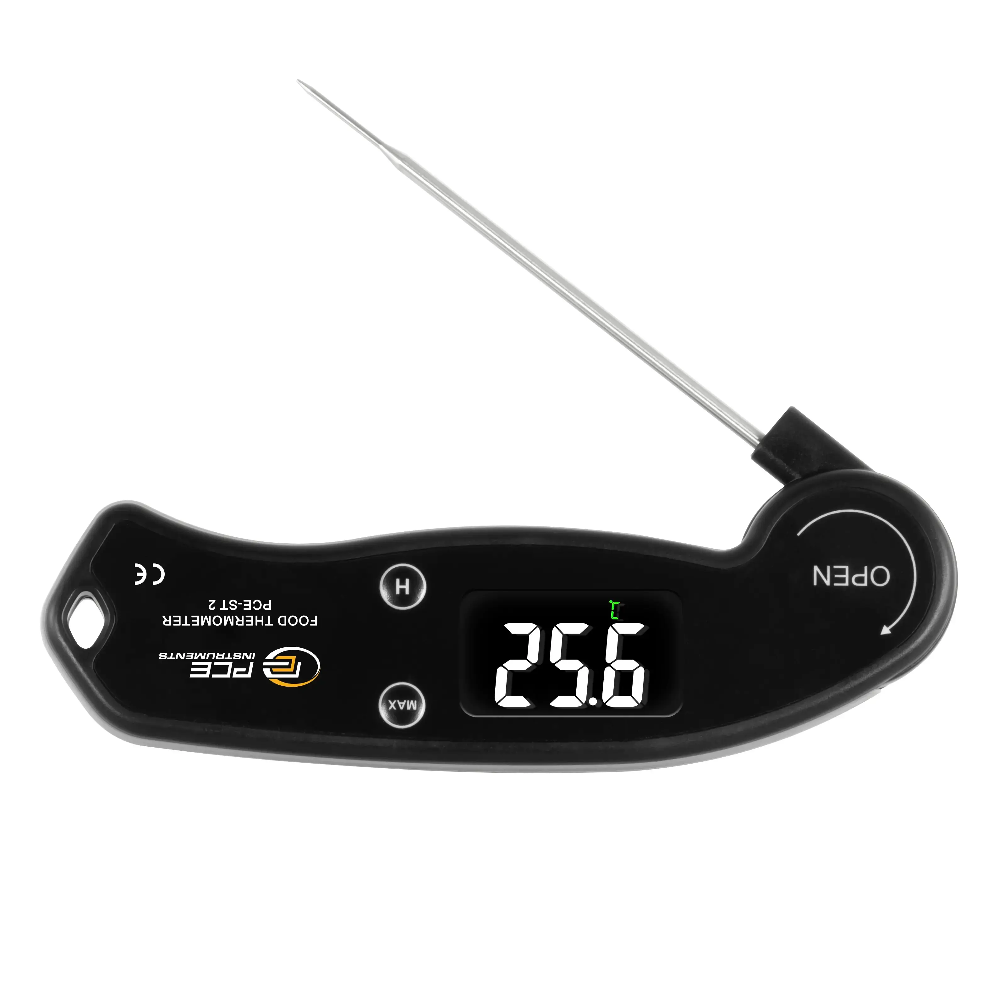 Ce contrôleur de température sert à effectuer rapidement un contrôle de température. D’autre part, le contrôleur de température est léger et ergonomique, ce qui permet une prise en main confortable. La sonde de température du contrôleur de température est en acier inoxydable : il est donc parfait pour prendre des mesures dans les aliments. Grâce à la lampe LED parallèle au capteur, le contrôleur de température peut mesurer même en cas de faible éclairage.