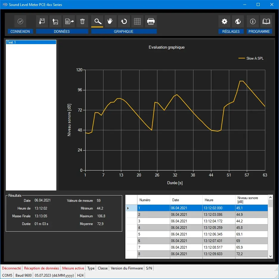 | Microphone | 1/2" de classe 1 Sensibilité Plage de fréquence Connexion Alimentation |