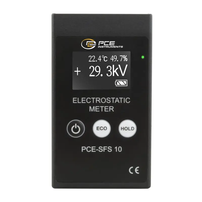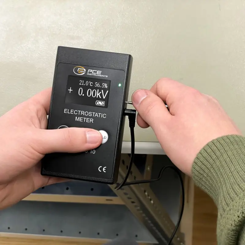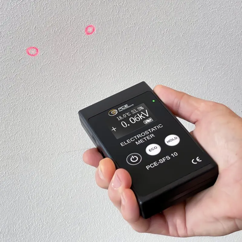 La mesure électrostatique est particulièrement importante pour vérifier si une surface, un élément ou le corps humain a une charge électrostatique. Si une décharge se produit, elle peut provoquer des dommages dans les composants électroniques. S'il y a des gaz ou des liquides inflammables, une flamme ou un incendie pourrait, dans le pire des cas, se produire. Le detecteur de radiation permet de détecter ces charges électrostatiques. C'est pour cela que ce détecteur de radiation s'utilise dans les salles ESD (sigles anglaises de Electrostatic Discharge). La plage de mesure de ce détecteur de radiation est de ±60 kV DC.