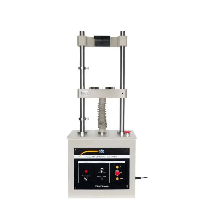 La vitesse de parcours est réglable entre 30 et 230 mm/min. Le dynamomètre est compatible avec les mesureurs de force PCE-PTR 200N, série PCE-FM et série PCE-DFG.