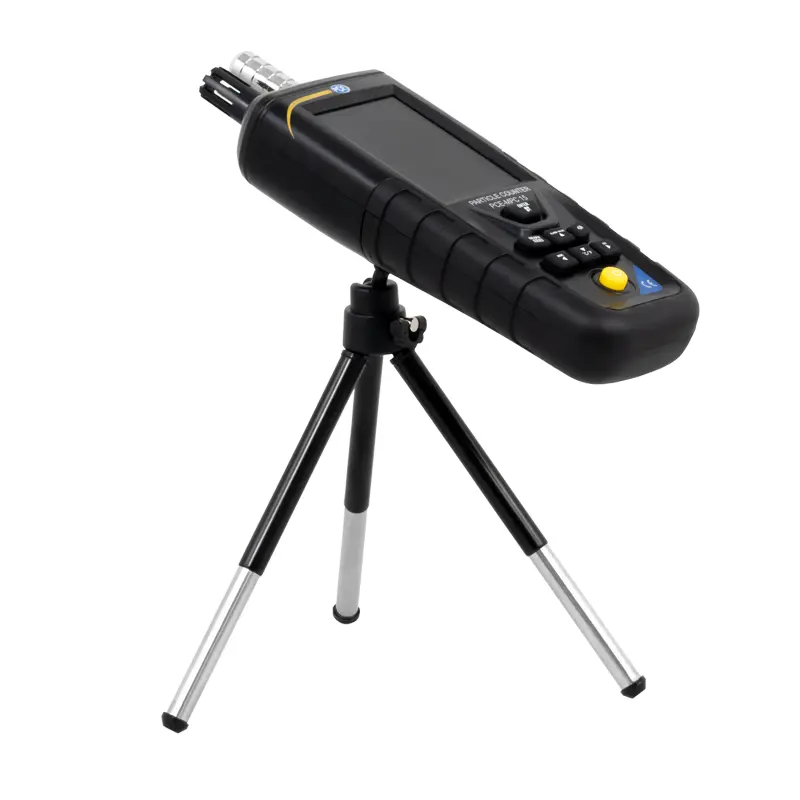 Cet échantillonneur d'air est utilisé dans les bureaux et les ateliers ainsi que dans les laboratoires, pour effectuer des mesures indicatives. L'échantillonneur d'air détermine le nombre de particules et la concentration massique PM2.5 et PM10 sur une plage entre 0 et 1000 µg / m³. En outre, il mesure la température et l’humidité ambiante. La fonction de réglage d’alarme de l'échantillonneur d'air est utilisée pour le PM 2.5.