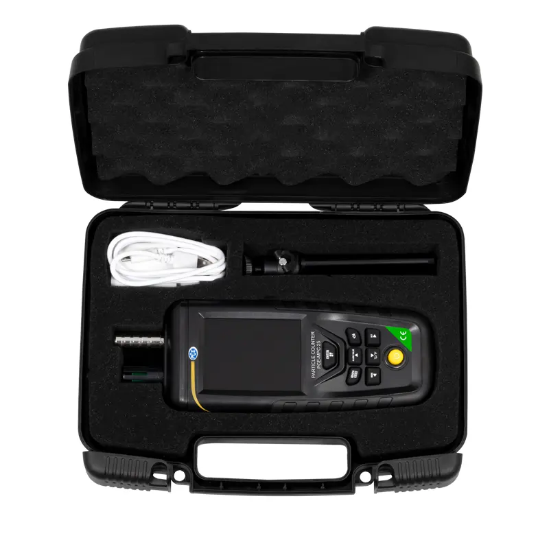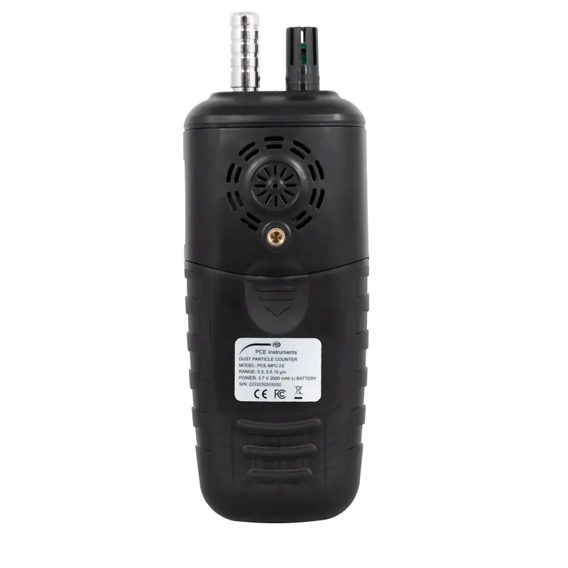 Cet échantillonneur d'air est utilisé dans les bureaux et les ateliers ainsi que dans les laboratoires, pour effectuer des mesures indicatives. L'échantillonneur d'air détermine le nombre de particules et la concentration massique PM2.5 et PM10 sur une plage entre 0 et 1000 µg / m³. En outre, il mesure la température et l’humidité ambiante. La fonction de réglage d’alarme de l'échantillonneur d'air est utilisée pour le PM 2.5.