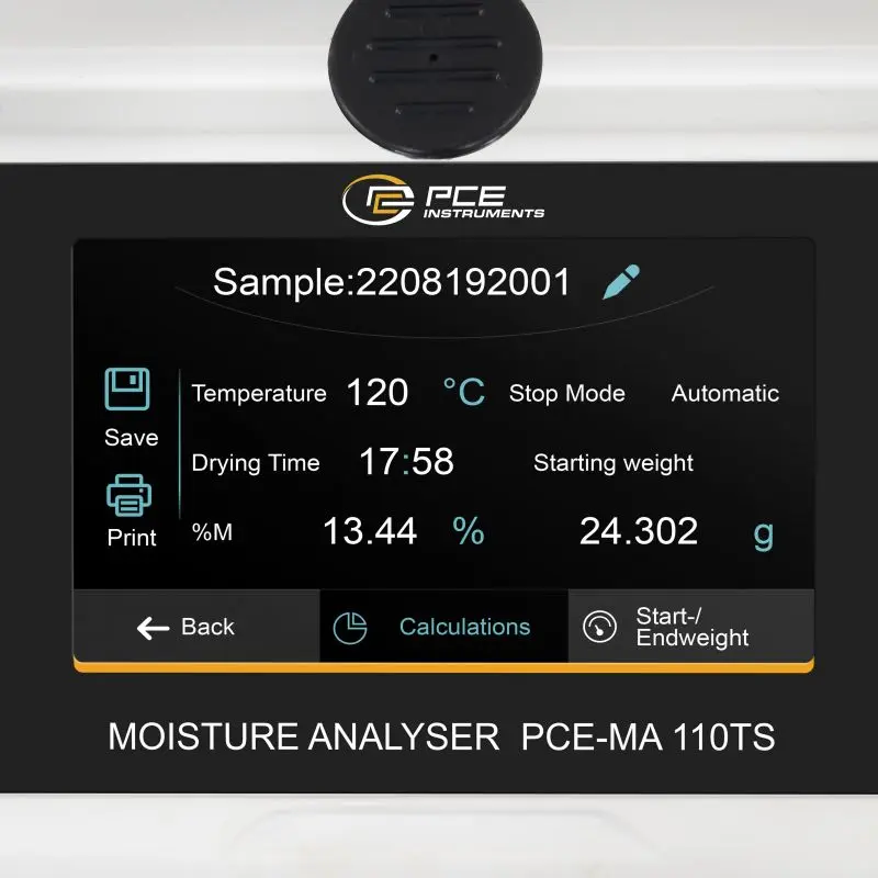 | Fonctions de mesure | %R – Humidité ATRO %D – Teneur en matière sèche %M – Teneur en eau %W – Poids initial |