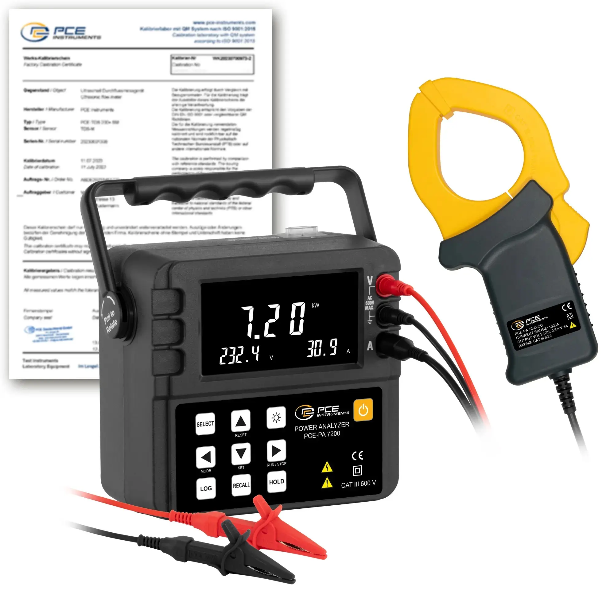 Mesureur d'énergie PCE-PA 7200-ICA avec certificat d'étalonnage ISO