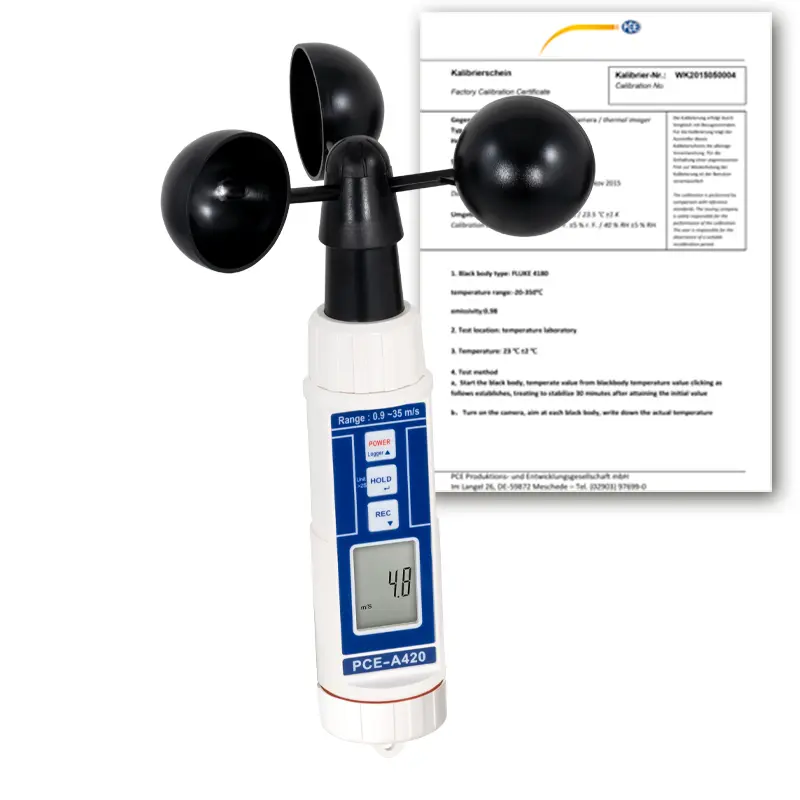 Mesureur d'environnement numérique à coupelles indépendant de la direction du vent dans la mesure / Certificat d'étalonnage ISO