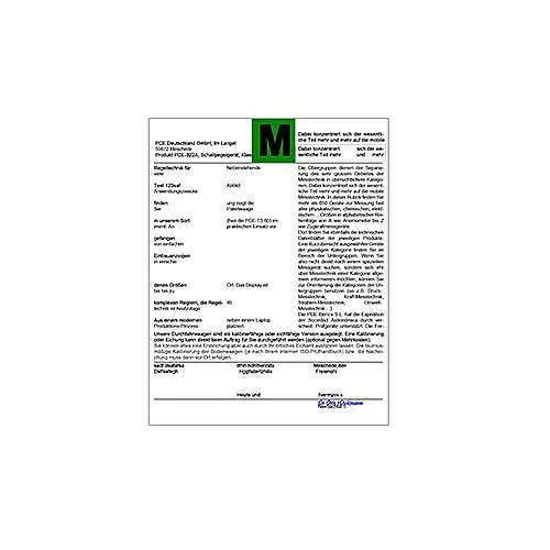 Certificat d'étalonnage avec une feuille de données et certifiées conformément aux normes ISO 9000 et suivant. Les certificats d'étalonnage sont émis spécialement pour le client et sont donc exclus du droit au retour.