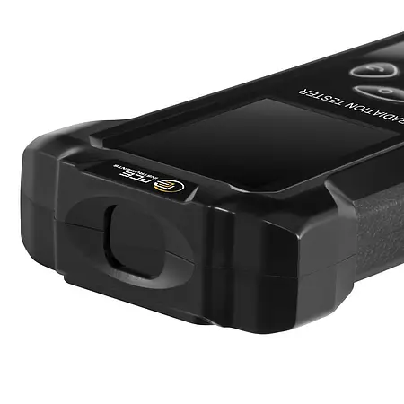 The environmental tester offers a measuring range of 0.00 to 1000 µSv/h and ensures precise measurements with a resolution of 0.01 µSv/h. Equipped with a highly sensitive Geiger counter tube and a sensitivity of 80 µSv/h, it enables reliable detection of radiation levels over a wide energy range from 48 keV to 1500 keV. Optionally, the device has alarm modes with adjustable limit values from 0.2 µSv/h to 10 µSv/h, which provide the user with acoustic or vibration-based warnings to react quickly to increased radiation levels. In addition to the current measured value, the environmental tester also graphically displays the course of the measurement curve over the last 3 minutes.