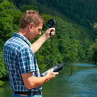 The Temperature Meter PCE-VA 11 is an extensively used measuring instrument. The temperature meter provides the opportunity to determine air speeds, air temperature and infrared temperature. The backlit LCD allows comfortable readings and facilitates use in dimly lit areas. To mount the windmill it has a thread on the back. Here it is possible to mount the wind meter on a thread. Thanks to the fast response time of the device, real-time measurement is possible without problems. The large display provides an accurate overview of the measured values and can optionally be backlit, which makes the wind meter useful even in low light conditions. Immediately after the impeller has been connected, the measurement can be started and measured values are immediately displayed on the display. Even if a specific temperature is to be measured at special measuring spots, this is possible by means of simple keystroke. The light laser serves as an orientation point. The measurement of the ambient temperature is then automatically deactivated. In addition to the wind speed, the device can also measure the airflow and the air temperature and is thus a very versatile measuring device, which can be used in different areas.