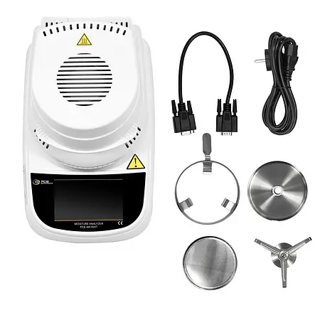 The benchtop scale enables accurate and simple moisture determination in a wide range of materials. The sample is automatically weighed, dried and the weight loss is displayed as moisture content. This measuring principle does not require any time-consuming curve generation and is immediately ready for use shortly after installation.