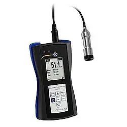 Il flussometro a ultrasuoni ha un range di misurazione di ±32 m/s. La precisione di ±1,5% del valore di misura per tubazioni ≥50 e ±3,5% del valore di misura per tubazioni DN <50, cosi come la riproducibilità di ±0,5% del valore di misura, convertono questo flussometro a ultrasuoni in uno strumento di misura molto preciso. Per installare in modo corretto i sensori del flussometro a ultrasuoni, è disponibile un menù di guida all'installazione. Con questo aiuto viene indicata graficamente la qualità del segnale dal flussometro a ultrasuoni. Per determinare l'energia termica con il dispositivo sono necessarie due termocoppie. Il modello PCE-TDS 200+ integra questa opzione. I sensori di temperatura dello strumento si collegano uno al tubo di ingresso e l'altro a quello di ritorno. Sulla base della differenza di temperatura e del flusso misurato, il dispositivo può determinare l'energia termica.