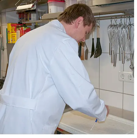 Il bioluminometro PCE-ATP 1-KIT2 viene utilizzato per rilevare rapidamente e semplicemente il grado di pulizia dei liquidi. Il bioluminometro dopo 10 secondi indica il valore di misura nell'ampio display LCD. La memoria interna del bioluminometro permette di registrare fino a 10.000 valori con data e ora. Il bioluminometro PCE-ATP 1-KIT2, che viene utilizzato con le provette per liquidi (PCE-ATP LIQ-SWAB), permette di rilevare rapidamente i microorganismi o i residui degli alimenti all'interno dei liquidi. La determinazione quantitativa di ATP (adenosina tri-fosfato) cosi come di AMP (adenosina mono-fosfato) viene effettuata nel bioluminometro portatile PCE-ATP 1-KIT2. Può registrare i valori di misura e processarli successivamente. Il bioluminometro viene utilizzato nelle farmacie, nella medicina, nella gastronomia, nel commercio, etc. Le misure con il bioluminometro sono effettuate mediante le provette di superficie ATP. Con il tampone incluso nella provetta controlla i liquidi. Il tampone viene spinto fino al fondo della provetta perchè entri in contatto con il liquido reattivo. Agitando lievemente si raccoglie il liquido reattivo nella camera di reazione della provetta. La provetta per liquidi viene introdotta al completo nella camera di misura del bioluminometro PCE-ATP 1-KIT2. Successivamente inizia la misura. Dopo 10 secondi viene visualizzato il risultato in RLU (Relativ Light Units) nel display del bioluminometro . Può utilizzare il bioluminometro PCE-ATP 1-KIT2 per differenti settori commerciali. Il bioluminometro permette un controllo ed una documentazione esaustiva nell'industria alimentare, per esempio nel controllo delle cucine industriali o durante la lavorazione degli alimenti a livello industriale. Il bioluminometro PCE-ATP 1-KIT2 aiuta ad implementare il concetto HACCP. La memoria del bioluminometro PCE-ATP 1-KIT2 archivia la data e l'ora delle varie misure, ed è inoltre possibile aggiungere differenti utenti per differenziare i vari valori registrati. Un altro ambito di applicazione del bioluminometro è il settore della sanità.