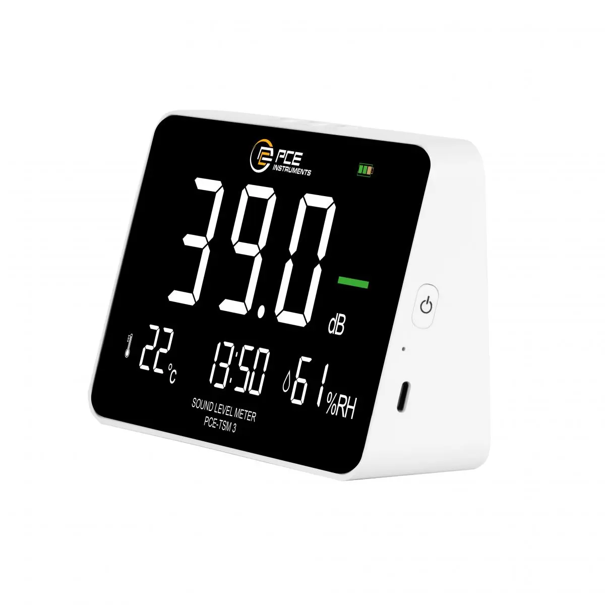 Dal punto di vista tecnico, il dispositivo da tavolo convince grazie a un display numerico abbinato a un indicatore semaforico ben visibile, che consente di valutare rapidamente l'esposizione al rumore. Il display da 6,9 pollici offre una chiara presentazione di tutti i valori rilevanti, compresa la visualizzazione dell'orologio e la luminosità del display regolabile in base alle diverse condizioni di illuminazione. Un indicatore del livello di carica della batteria fornisce informazioni affidabili sullo stato di carica attuale della batteria al litio integrata, che può essere ricaricata tramite una moderna interfaccia USB-C.