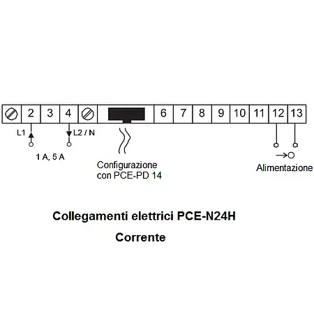 Nota sulla configurazione: per la configurazione del dispositivo è necessario l'adattatore di programmazione PCE-PD14 (da ordinare separatamente), utilizzando il software LPCon e l'interfaccia USB è possibile configurare o leggere la configurazione del PCE-N24H.