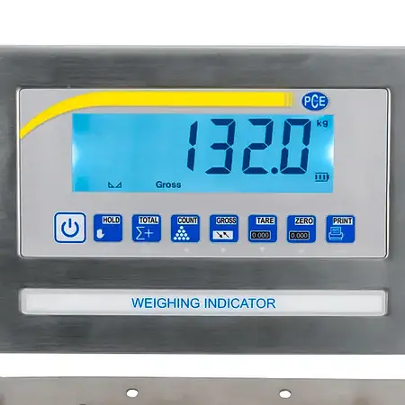 Con la bilancia da pavimento portatile PCE-EP 1500 può pesare, per esempio, direttamente sulla piattaforma di carico. Questo significa: diminuzione dei tempi di carico e scarico, percorso più corto con il pallet pieno, riduzione del personale, ormai non deve più portare il pallet alla bilancia ma può portare la bilancia dove è il contenuto da pesare. Può effettuare pesate senza complicazioni e con un ottimo controllo. Il trasporto è semplice grazie al suo peso ridotto, alle ruote ad una estremità ed al manico all'altra estremità. La bilancia da pavimento è alimentata attraverso una batteria ricaricabile. La funzione di calibratura automatica consente una verifica rapida e semplice sul campo attraverso i pesi di regolazione (pesi di regolazione non inclusi). La bilancia da pavimento si può trasportare facilmente. Il display può essere montato su di un treppiede o si può collocare su un tavolo. Per ulteriori informazioni sulla bilancia da pavimento PCE-EP 1500 si metta in contatto con noi al numero +39 0583 975114 o utilizzi il nostro