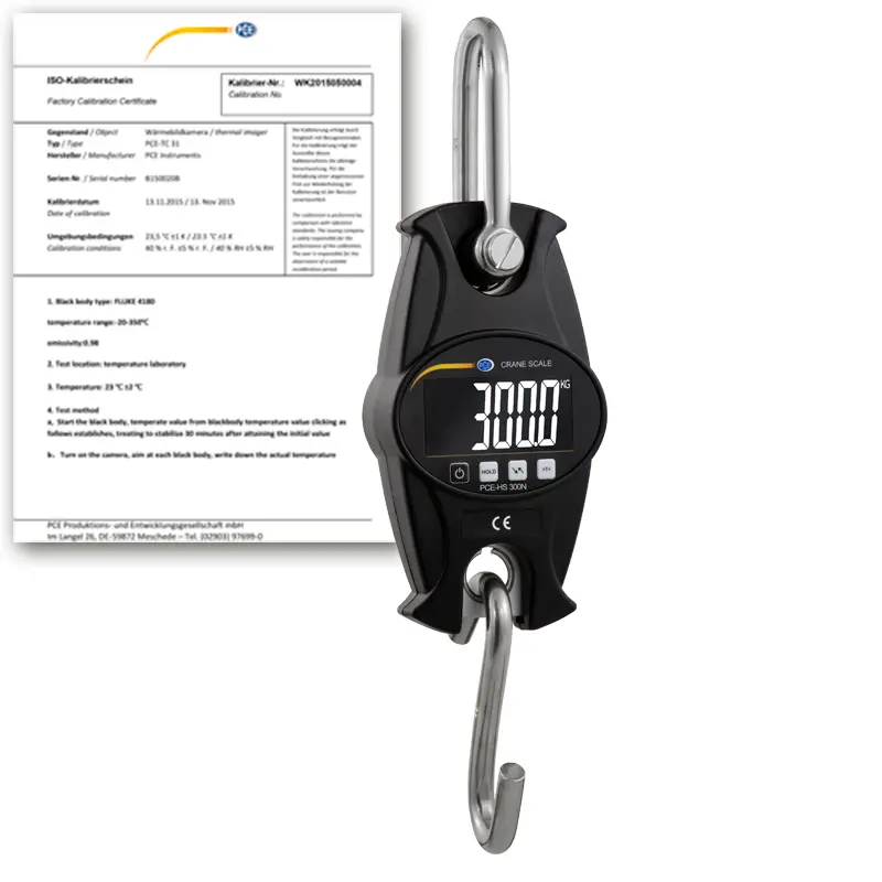 Bilancia industriale con struttura in metallo / Range di misura: 0 ... 300 kg / Spegnimento automatico dopo 15 minuti di inattività / Alimentazione a batterie / Funzione "HOLD" / Altezza cifre: 22 mm / Unità di misura: kg, lb, N / Rapporto di taratura ISO incluso