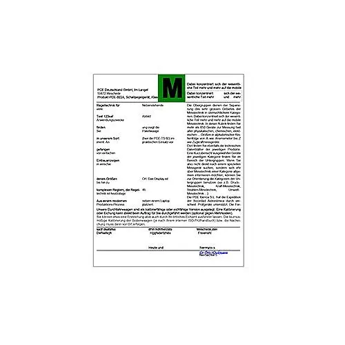 Certificat d'étalonnage avec une feuille de données et certifiées conformément aux normes ISO 9000 et suivant.