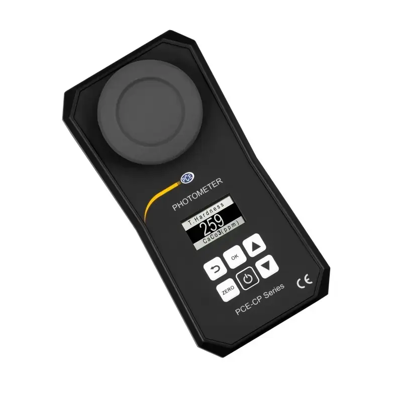 Le testeur d'eau pour piscines est un dispositif portable pour une vaste analyse de l'eau. Avec ce testeur d'eau pour piscines, vous pouvez déterminer, en peu de temps, le degré de dureté de l'eau. La mesure de la dureté de l'eau est particulièrement importante pour éviter la calcification des tuyauteries ou des machines, comme les machines à laver, les systèmes de pompage ou une simple cafetière. La source lumineuse LED intégrée au testeur d'eau pour piscines génère une lumière sur une plage spectrale de 503 nm, 570 nm ou 620 nm. Une photodiode détecte la valeur de mesure en fonction de la transmission de lumière de l'échantillon.