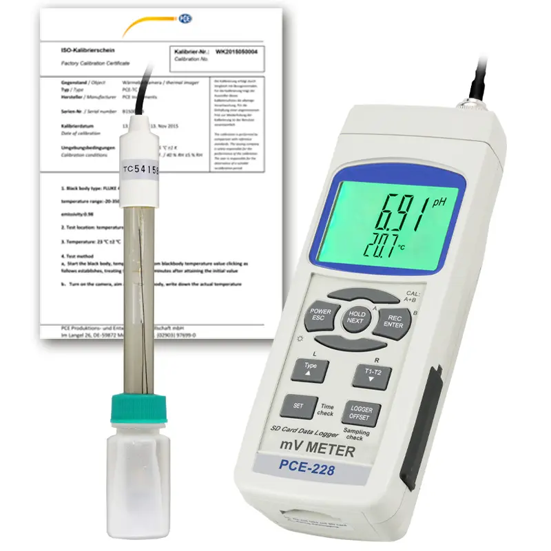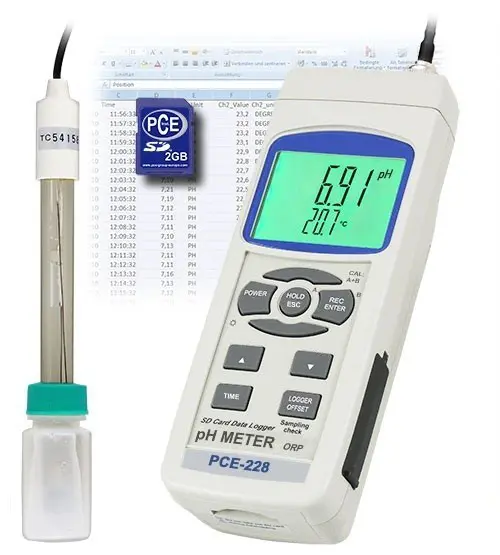 Controlador ambiental para agua de mano para valor de pH, Redox y temperatura / tarjeta de memoria SD (1 ... 16 GB), los datos almacenados se almacenan en un archivo Excel / pantalla grande / con interfaz RS-232 y software opcional para el PC