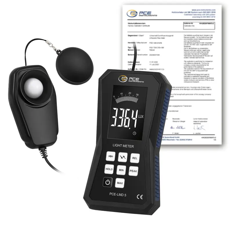 Controlador ambiental con sonda externa / Cuota de medición de 4 Hz / Rango: 0 ... 400.000 lux / Interfaz micro USB / Unidades: Lux y Footcandle / Opcional: Certificado de calibración ISO