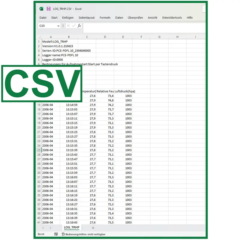 Los valores de medición quedan almacenados en la memoria interna del controlador ambiental. La capacidad de memoria del controlador ambiental es de 13.340 datos. Una vez que ha finalizado un ciclo de medición podrá leer los datos registrados en un ordenador independientemente del sistema operativo que tenga. Esto es posible gracias a que el ordenador detecta el controlador ambiental como una memoria externa. Cuando registra los datos estos quedan almacenados en formato pdf y csv.