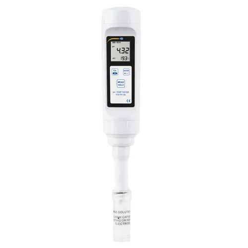 El controlador ambiental digital está equipado con un electrodo de membrana plano. El electrodo del controlador ambiental digital es alargado. Así podrá introducir el controlador ambiental digital en tubos de ensayos para medir el pH de medios viscosos. Esta característica permite usar pequeñas cantidades de líquido para determinar el pH. Esta característica permite al controlador ambiental usar pequeñas cantidades de líquido para determinar el pH. Por lo tanto, el controlador ambiental se puede utilizar no solo insitu sino también en el laboratorio con volúmenes muy pequeños de muestra.