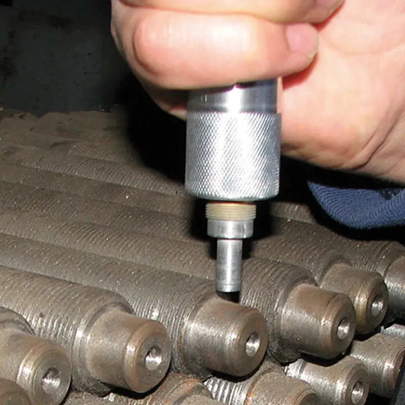 El equipo de ensayo END UCI realiza todas estas mediciones de forma no destructiva. Es cierto que deja una huella microscópica en la superficie. No obstante, es tan pequeña que no se percibe a simple vista. El equipo de ensayo END UCI es perfecto para medir piezas con bordes duros, como por ejemplo, piezas que se se producen por nitruración o por temple por inducción. Este equipo de ensayo END se utiliza normalmente para medir matrices para cortar, prensas, piezas de paredes gruesas, ruedas dentadas, palas de turbinas, ejes de levas o puntos de soldadura. El equipo de ensayo END UCI es también ideal para cualquier otro tipo de comprobaciones de dureza. Las sondas de medición son intercambiables. Como cada una tiene una presión de aplicación distinta podrá usarlas en diferentes aplicaciones.
