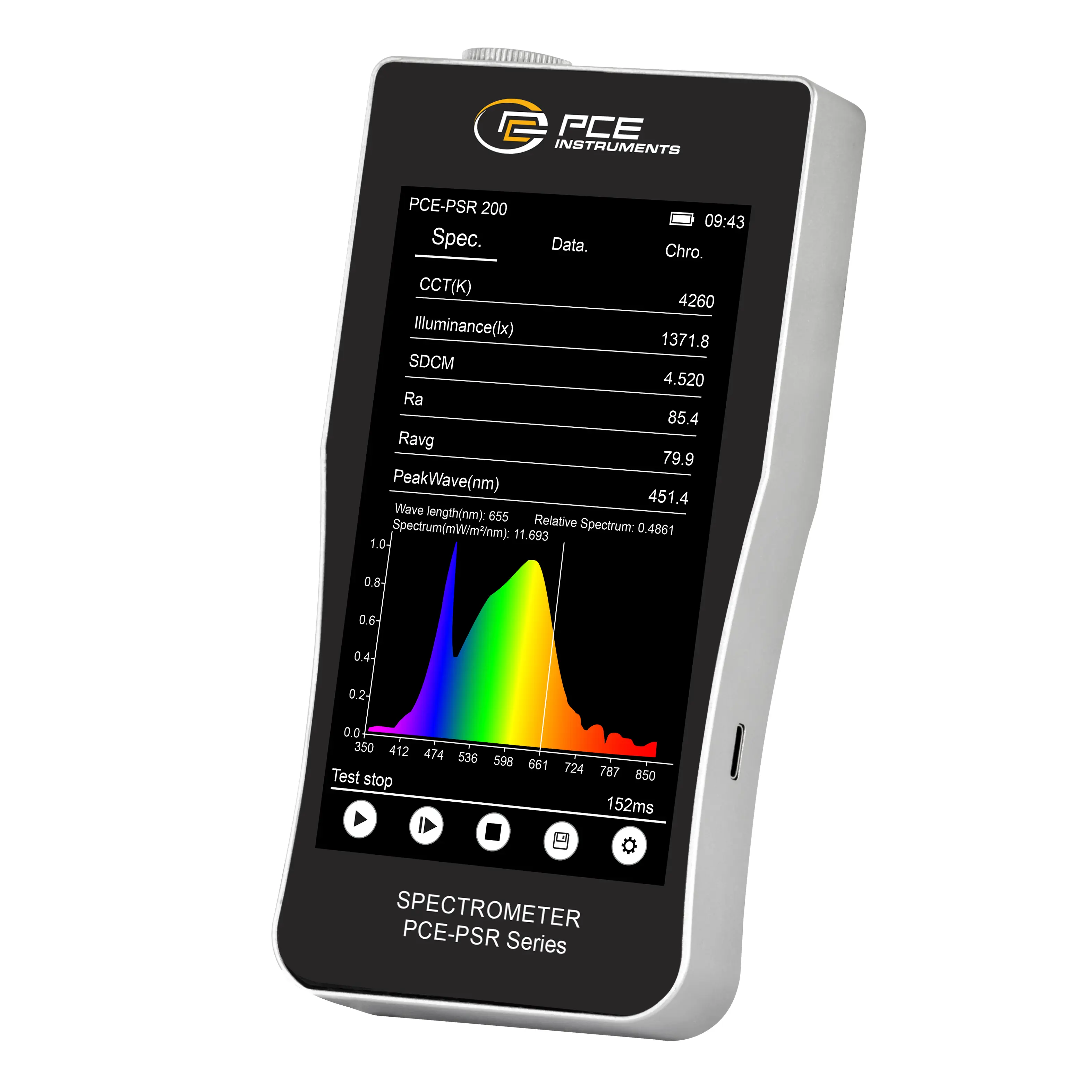 Con un amplio rango de iluminancia de 0,1 a 500.000 lux y una precisión de ±0,1 lux, el fotometro es adecuado tanto para fuentes de luz débiles como para entornos extremadamente luminosos. La medición de la temperatura de color correlacionada (CCT) de 1500 K a 100.000 K con una desviación de ±0,6 % permite una evaluación detallada de la calidad de la luz y la temperatura de color.