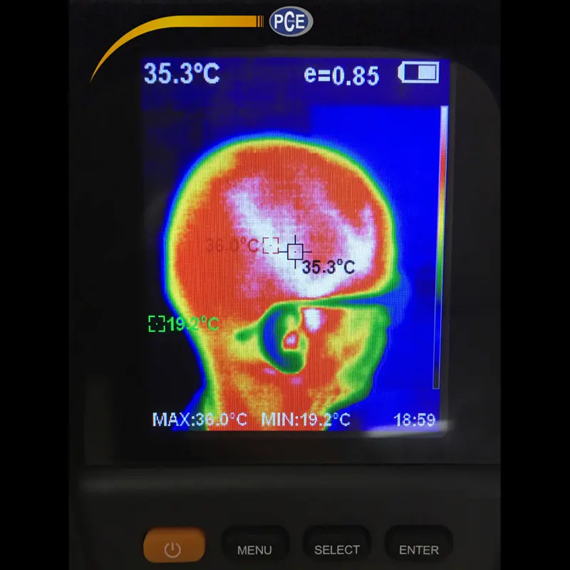 La pantalla del pirometro ofrece la posibilidad de visualizar de forma automática el punto más caliente y más frío en la imagen térmica. Gracias a las funciones potentes integradas en el pirómetro podrá detectar rápidamente las irregularidades en máquinas y tomar las medidas necesarias in situ para prevenir daños. Puede transferir las imágenes térmicas almacenadas a su ordenador a través de un cable de conexión. La memoria interna de 3 GB de la pirómetro puede almacenar más de 20.000 imágenes térmicas.