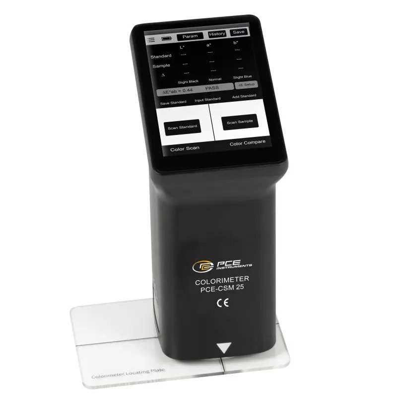 Este espectrofotómetro es un instrumento de medición portátil de alta precisión para determinar y comparar colores en diversas aplicaciones industriales y artesanales. Gracias a la moderna geometría de medición D/8° con reflexión especular integrada (SCI), el aparato es ideal para el análisis del color de superficies brillantes, mates o texturadas. Se maneja a través de una pantalla táctil de 3,5 pulgadas de fácil manejo, que está inclinada ergonómicamente en un ángulo de 20° y permite un uso cómodo sin botones físicos.