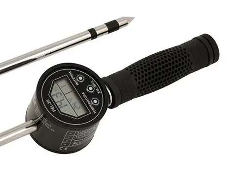 El medidor de humedad de materiales para pellets es apto para mediciones orientativas de pellets de serrín, astillas, heno, paja, pedazos de papel, vainas de girasol y de alforfón, maíz, soja etc. Para ello, solamente hay que introducir la sonda de medición de 1000 mm en el montón de pellets, y tras la estabilización ya se puede leer el valor de medición. La medición se realiza en la punta de la sonda del medidor de humedad de materiales para pellets. Se recomienda realizar varias mediciones en diferentes puntos para obtener una idea general sobre la humedad de los pellets. De este modo, el medidor de humedad de materiales para pellets ayuda a determinar la humedad de pellets rápido y económicamente.