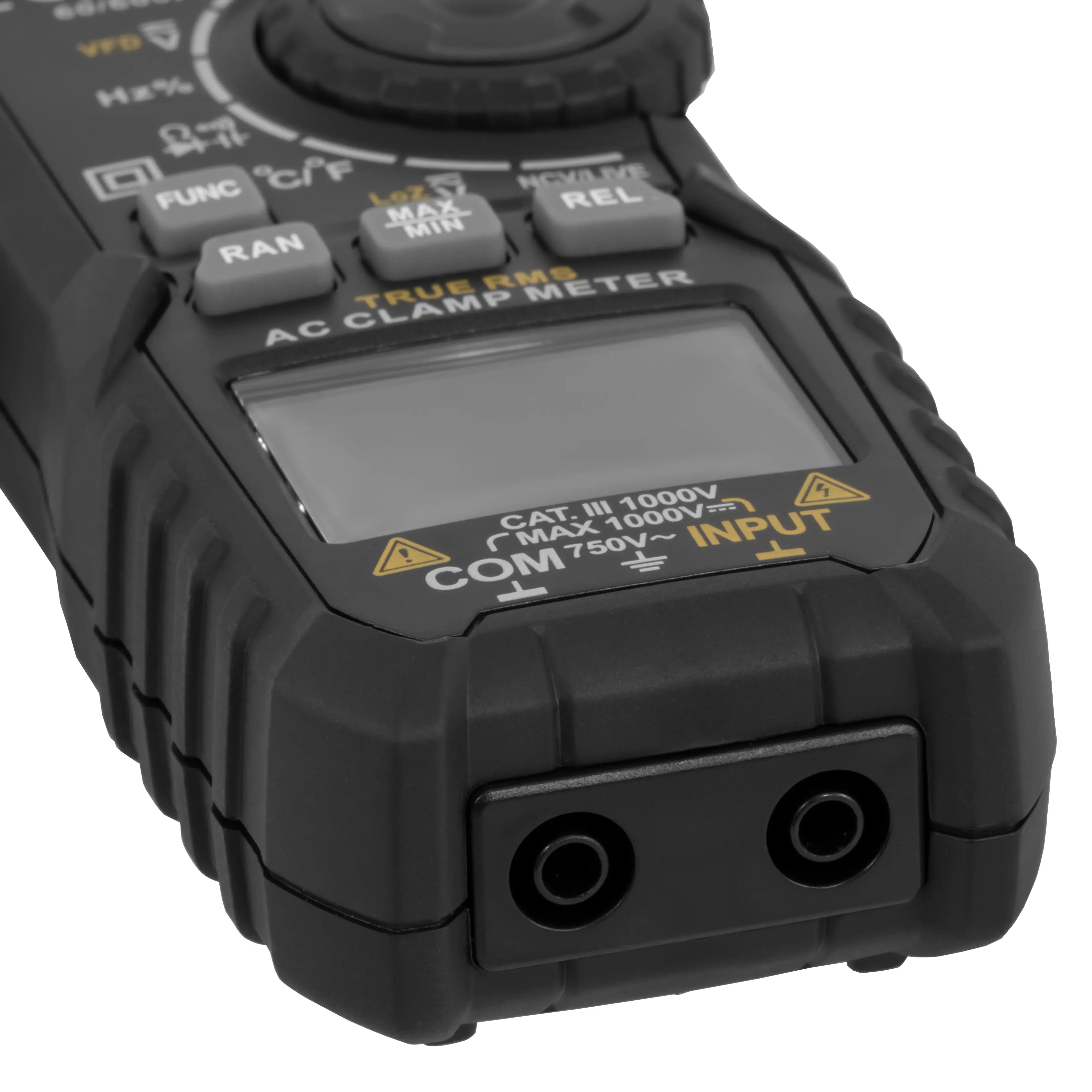 Para obtener la máxima precisión, el tester de voltaje digital incorpora la medición TRMS para formas de onda no sinusoidales y una función de baja impedancia (LoZ) para reducir las interferencias. La prueba de tensión sin contacto permite la detección fiable de tensiones en cables y tomas de corriente.