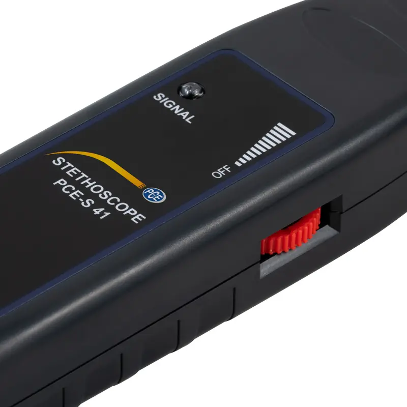 El vibrómetro funciona con baterías y es muy manejable. Este vibrometro puede ser usado para detectar ruidos en máquinas, como p.e. en rodamientos, válvulas en ventiladores, bombas ... Esto convierte al vibrometro en una herramienta óptima para la supervisión de ruidos y vibraciones, dando al responsable del mantenimiento la posibilidad de reconocer las fuentes de error antes que surja una avería en máquinas o instalaciones (prevevención y conservación). La carcasa del vibrómetro es de plástico ABS, y se ha tenido en cuenta en el diseño el manejo cómodo. El vibrometro funciona con un transductor piezoeléctrico, que detecta incluso los ruidos más bajos. El auricular del vibrómetro está equipado con dos orejeras ajustables, que está conectado con un cable de 2 m. Use también usted el vibrómetro en su empresa.