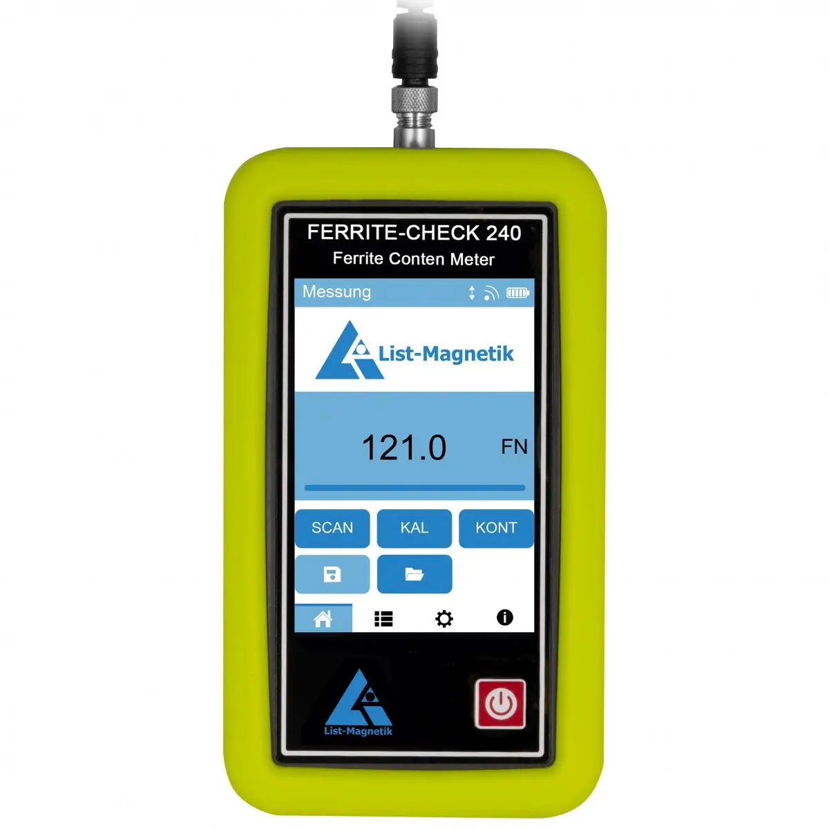 Miernik typu ferrytoskop wyposażony jest w: dotykowy wyświetlacz typu LCD z innowacyjnym interfejsem i rozdzielczością 320 x 480 pikseli oraz pamięć wewnętrzną do 10.000 wartości pom. Darmową aplikację Lima Connect służącą do przesyłania danych do komputera można pobrać z naszej strony internetowej. Dzięki Lima Connect ferrytoskop może nawiązać bezprzewodowe połączenie z komputerem z systemem Windows, wykonywać pomiary online lub odczytywać dane z pamięci urządzenia, a także przeprowadzać analizy statystyczne i wyświetlać dane w formie wykresu. Wyniki można drukować lub eksportować do innych aplikacji, takich jak Microsoft Word i Microsoft Excel.