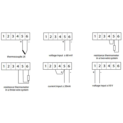 Pt100: -100 ... 850 °C (± 0,2 % zakresu + 1 cyfra) Typ J: -100 ... 1200 °C (± 0,2 % odczytu + 1 cyfra) Typ K: -100 ... 1370 °C (± 0,2 % zakresu + 1 cyfra) Prąd: -20 mA ... 20 mA (± 0,2 % zakresu + 1 cyfra) Napięcie: -60 ... 60 mV (± 0,2 % zakresu + 1 cyfra) ) Napięcie: -10 ... 10 V (± 0,2 % zakresu + 1 cyfra) td> |