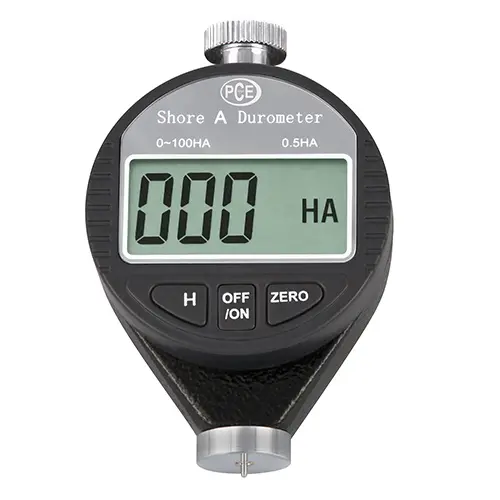 Twardościomierz   ; to poręczne urządzenie do badania twardości Shore'a gumy, tworzyw sztucznych i innych materiałów niemetalicznych, produkowane w znanej wszystkim doskonałej jakości. Obszar zastosowania cyfrowego twardościomierza dla Shore'a A to głównie miękka guma, elastomery, kauczuk naturalny, neopren, poliester, żywica lana, miękkie PCV, skóra itp. Jeśli próbka pomiarowa jest cieńsza, próbkę pomiarową należy wzmocnić inną próbką z tego samego materiału z tyłu, aby zwiększyć grubość.