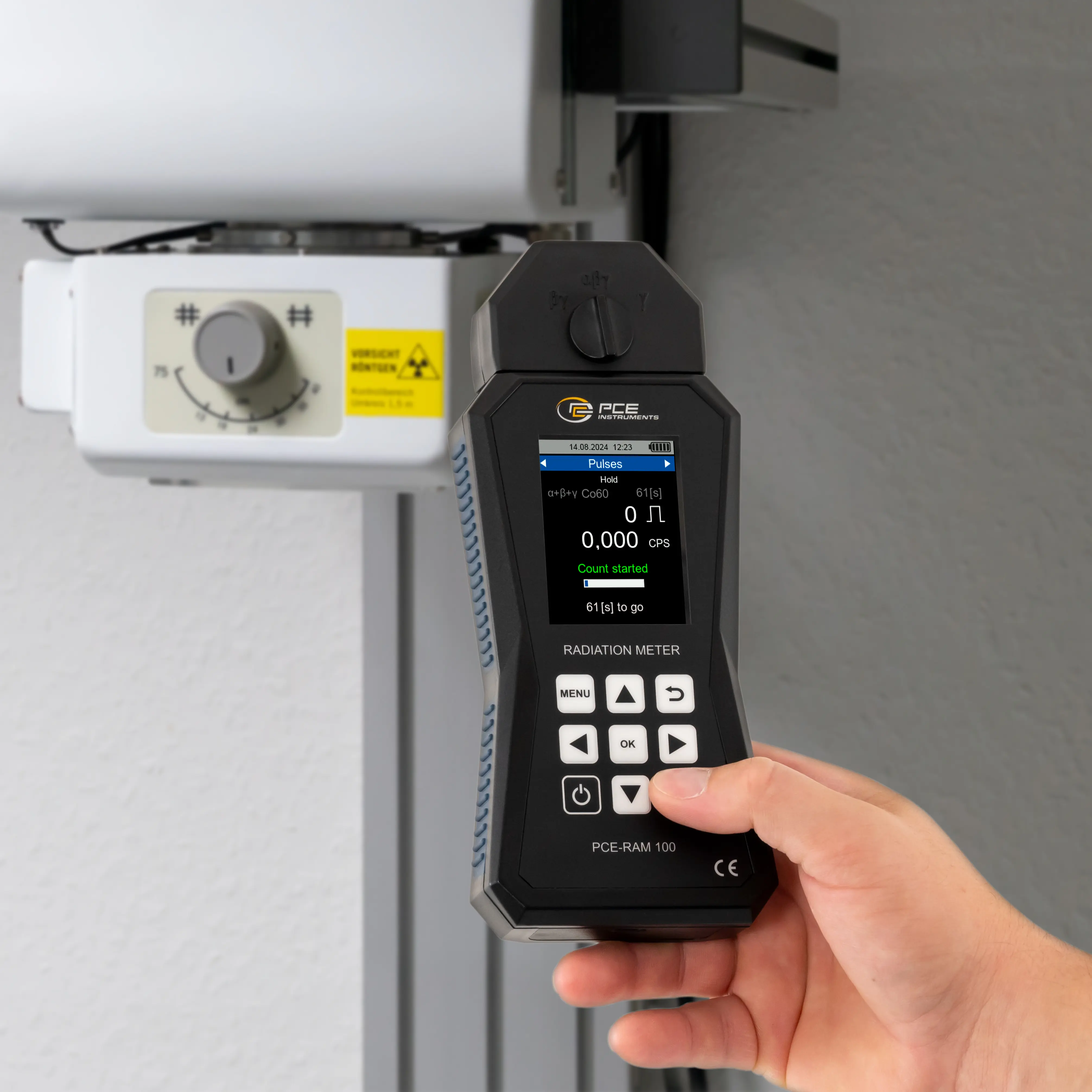 O medidor de prevenção e segurança no trabalho é um dispositivo profissional para a detecção de radiação alfa, beta e gama com amplas funções. O medidor de prevenção e segurança no trabalho mede e registra com precisão a dose de radiação acumulada e faz a contagem da radiação em cps (contagem por segundo) e cpm (contagem por minuto). Integra uma memória de 32 GB para registrar os valores e analisá-los posteriormente em detalhe. Na tela TFT colorida, é possível visualizar o histórico gráfico das medições. Também é possível definir um limite de alarme individual. Ao exceder um determinado valor ou uma dose de radiação definida, o medidor de prevenção e segurança no trabalho exibirá uma mensagem de advertência.