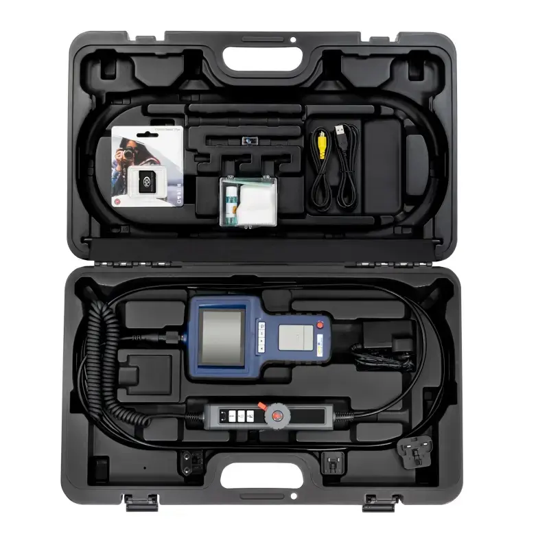 NDT cihazı PCE-VE 350HR, bakım teknisyenleri ve geliştirme mühendisleri için ideal bir ölçüm cihazıdır. NDT cihazı, makine ve sistemlerin iç işleyişine bakılmasını ve elde edilen bu görüntü ve videoların SD karta kaydedilmesini sağlar. NDT cihazının 6 mm’lik kablo çapı ve 1000 mm’lik kullanışlı kablo uzunluğu sayesinde en küçük bileşenler de incelenebilir. NDT cihazının kullanımı kolaydır: esnek kablo görüntülenecek alana yakın bir delikten ya da boşluktan geçirilir ve ekrandan takip edilir. Joystick ile kamera ucu 2 yönde hareket ettirilebilir. Belgeleme için bir fotoğraf çekilebilir ve bu fotoğraf NDT cihazının dahili belleğinde kaydedilebilir. Bunun haricinde, çekilen fotoğraf bilgisayara da aktarılabilir. Böylece, elde edilen görüntü analiz edilebilir ya da diğer kişilere gösterilebilir. Esnek kılavuzu, düşük ağırlığı ve mükemmel optikleri sayesinde NDT cihazı ile zayıf noktalar ve sorunlu alanlar kolay bir şekilde tespit edilebilir. Böylece, zaman alan sökme işlemlerine gerek kalmadan hedefe yönelik önleyici tedbirler alınabilir.