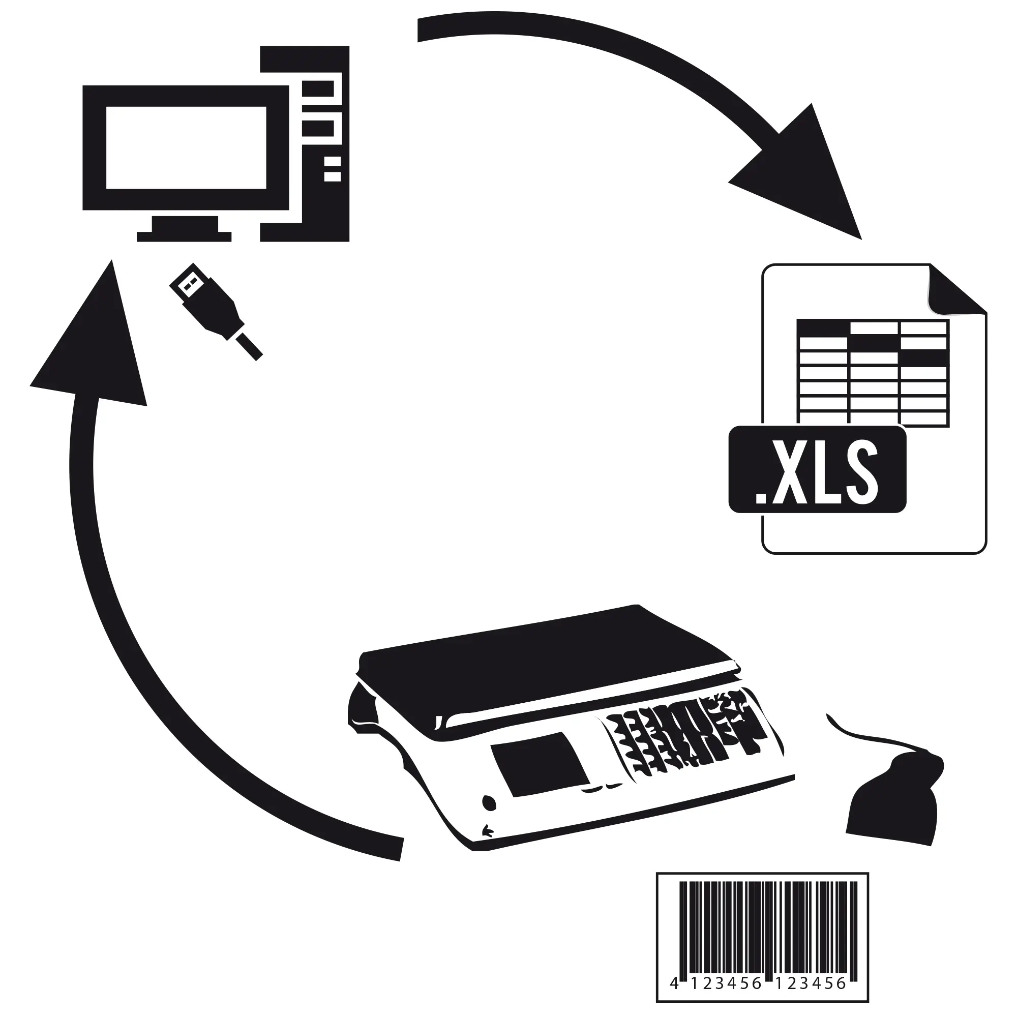 Tezgah Terazisinde çok sayıda tuş olmasına rağmen veri işlemleri gerçekleştirmek epey kolaydır. Bu işlem, bilgisayarda tablo şeklinde yapılabilir. Örneğin, Excel’de bellek konumu, ürün adı, barkod, birim ağırlığı, hedef ağırlık, sapma toleransı (min. - maks.) ve dara ağırlığını içeren bir tablo oluşturulabilir ya da şirketin envanter yönetim sistemi de kullanılabilir. Girilen tüm bu bilgiler CSV dosyası olarak kaydedilir. Ardından, Tezgah Terazisinin teslimat içeriğinde yer alan ücretsiz yazılım kullanılarak bu veriler Tezgah Terazisine aktarılabilir. Veriler başarıyla aktarıldıktan sonra ürünlere hızlı ve kolay bir şekilde erişilebilir. Bu işlem, Tezgah Terazisindeki seçim tuşları kullanılarak ya da opsiyonel olarak temin edilebilen tarayıcı yardımıyla yapılabilir.