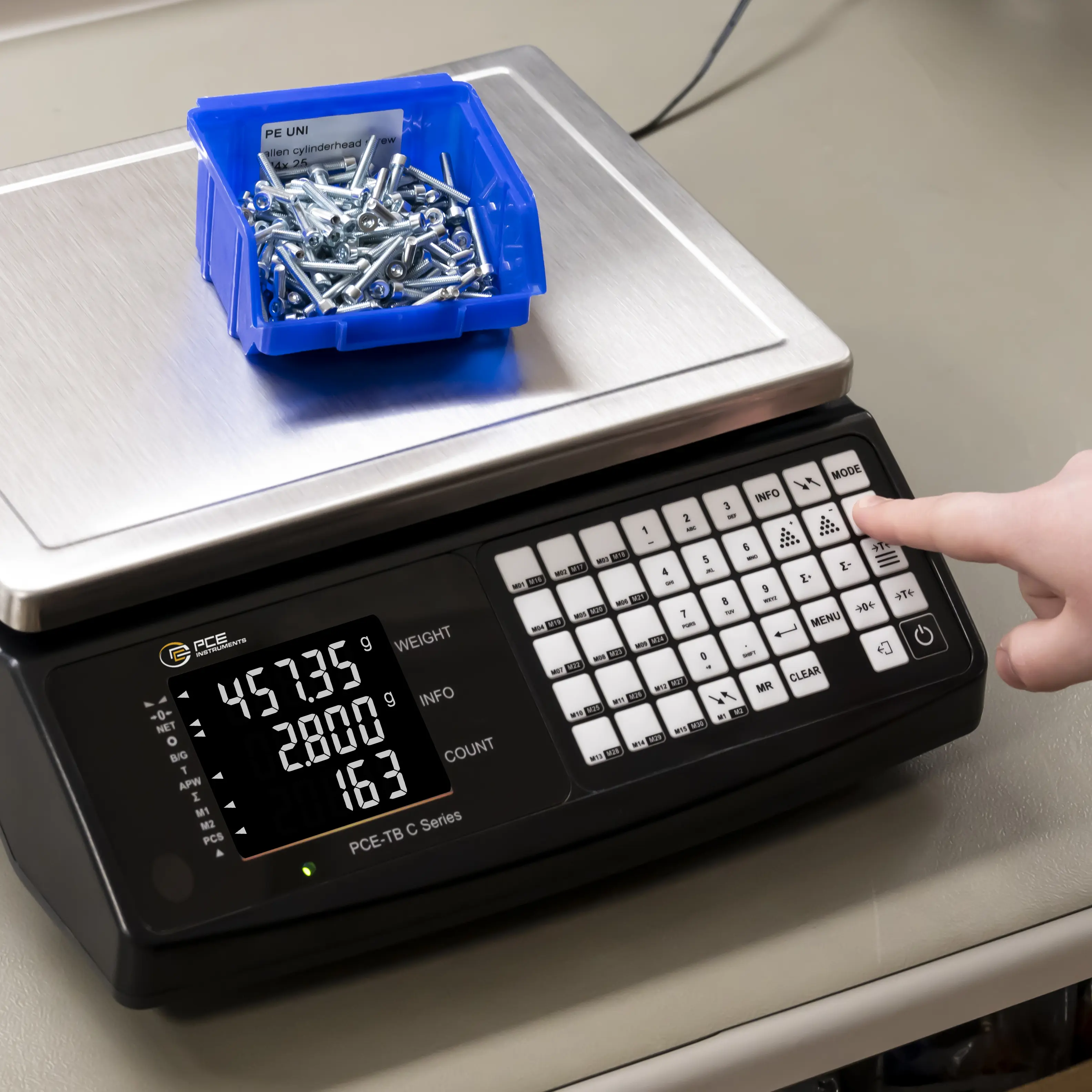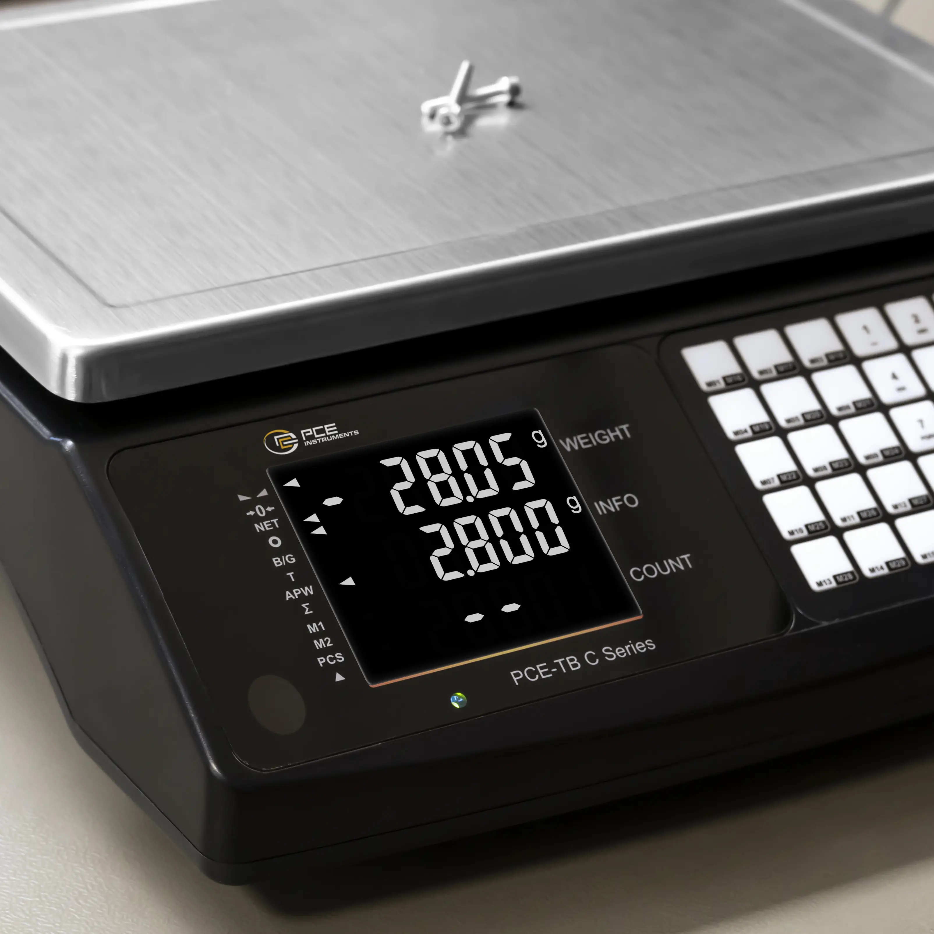 Tezgah Terazisi PCE-TB 1,5C, her türlü sayım görevi için kullanılabilecek profesyonel bir yardımcıdır. Tezgah Terazisinde tarayıcı ile kolay bir şekilde alınabilen 1000 ürün için dahili hafıza bulunur. Tezgah Terazisinde kaydedilebilecek ürün verileri şunlardır: ürün adı, tarayıcı kodu, birim ağırlığı, izin verilen MİN / MAKS. ağırlık sapmaları ve ambalaj ağırlığı (TARE).