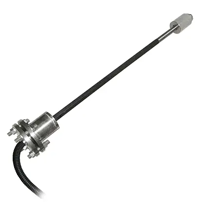 The bow shape makes it extremely robust against shocks and mechanical abrasion. It is fastened by means of adapters on the wall of tanks and silos.