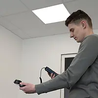 Measurements can be taken with the LED luxmeter in lux or food candle. The device is operated using just seven buttons, which enables one-handed operation. Our LED luxmeter is a battery-operated handheld device, making mobile measurements possible.
