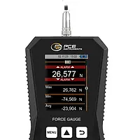 The dynamometer can be used to measure both tensile and compressive forces with high accuracy. Tensile and compressive forces are often measured in the test laboratory. For example, to determine the yield point, the tear-off force or the force required to actuate buttons or switches. The device is supplied with an external measuring cell and can measure forces of up to 2,500 N. Various eyelets or hooks with an M12 thread can be attached to the measuring cells. It is also possible to attach your own devices to the measuring cell using these threads.